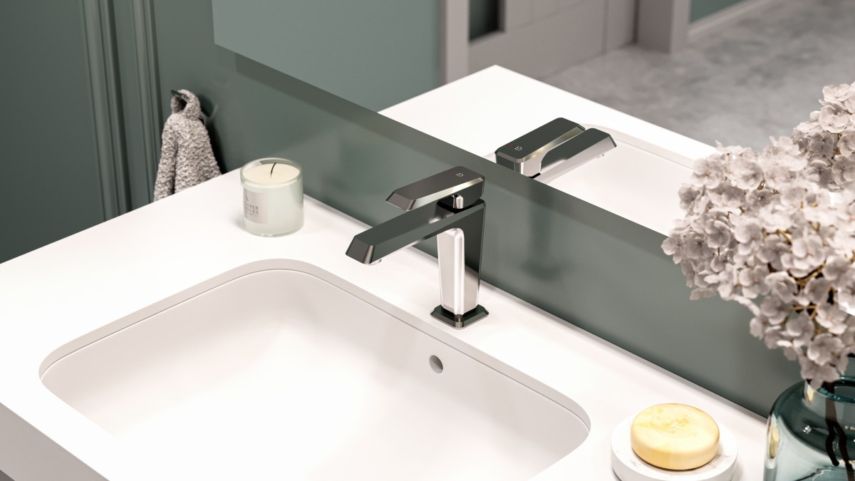 A faucet with a massive shape characteristic of the entire collection, highlighted by a chrome coating with a shiny effect. The geometric forms of individual elements marked with a rounded line have elegant "cuts" that harmonize with the whole. A faucet equipped with modern solutions allows for economical water management and reduction of household expenses. It combines good taste and fashionable trends. It is an ideal proposition for industrially arranged interiors dominated by geometry and minimalism.