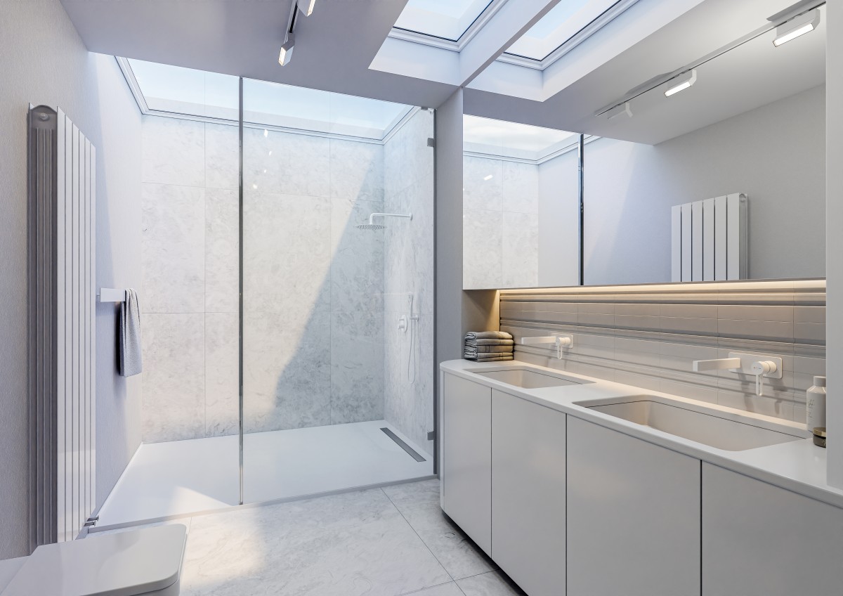 A matte white shower set is a great solution for interiors arranged in accordance with the latest design trends. A SLIM rain shower with a diameter of 25 cm and a perfectly matching three-function shower handle will allow for a relaxing and invigorating bath. They were equipped with a functional concealed faucet with a round rosette, a bathtub/shower switch and an ergonomic, tasteful handle visible from the outside. The whole thing looks extremely impressive and elegant.